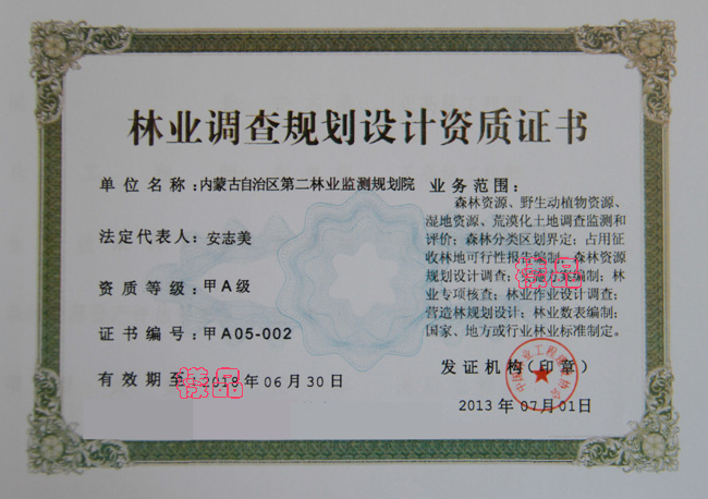 林业调查规划设计资质证书